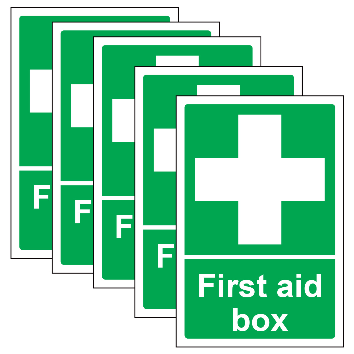 5-Pack First Aid Box – Portrait helps people find first aid equipment quickly and act without hesitation. Clear symbols and concise wording reduce confusion during incidents and keep your workplace aligned with your safety procedures. Placed at eye level on doors, cabinets and notice points, this sign improves visibility and supports your legal duty to provide suitable first aid arrangements.