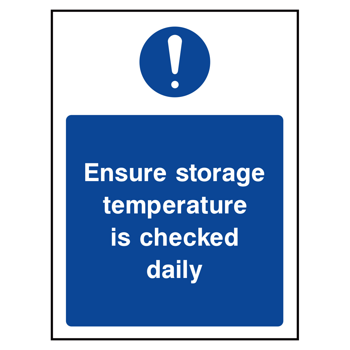 Ensure storage temperature is checked daily sign is a clear, durable notice that places the right instruction exactly where staff make decisions. In busy kitchens and food production areas, people move quickly; they need short, unmistakable prompts to wash hands, separate raw and cooked products, and use the right storage locations. This product helps you cut cross contamination, raise audit scores, and keep service flowing without friction. Because the legend is simple and the contrast is high, users react immediately without coaching.