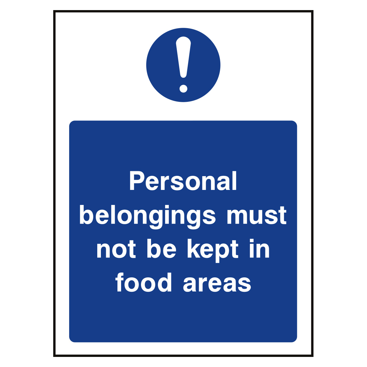 Personal belongings must not be kept in food areas sign: purpose and key outcomes