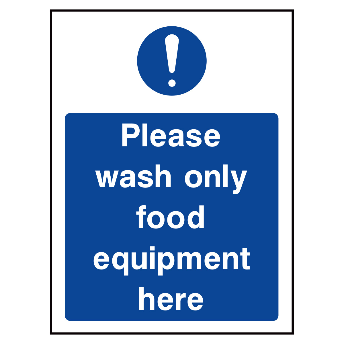 Please wash only food equipment here sign is a clear, durable notice that places the right instruction exactly where staff make decisions. In busy kitchens and food production areas, people move quickly; they need short, unmistakable prompts to wash hands, separate raw and cooked products, and use the right storage locations. This product helps you cut cross contamination, raise audit scores, and keep service flowing without friction. Because the legend is simple and the contrast is high, users react immediately without coaching.